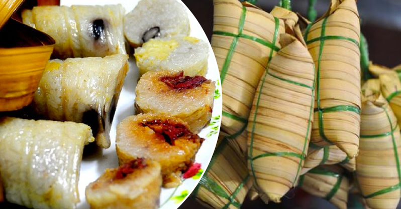 Tùy vào sở thích của mỗi người mà có nhiều loại nhân khác nhau như dừa hay chuối. Thường người ta dùng cơm dừa nhuyễn rồi trộn cùng đậu xanh, đem nấu nhừ, thêm hành lá, một chút muối cho đậm vị rồi vo thành từng nắm để làm nhân. Hay đơn giản hơn, người ta dùng chuối cắt làm hai phần, ướp thêm chút đường làm nhân bánh cũng rất ngon.